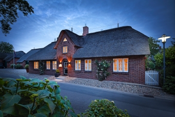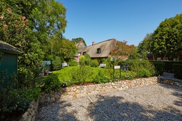 Inmitten eines gepflegten Gartens, umgeben von einem Friesenwall aus Feldsteinen, erstreckt sich das historische Gebäudeensemble. Das stilvolle, kleine Hotel unter Reet bietet Erholungssuchenden zehn individuell eingerichtete Zimmer und stilvolle Suiten. Gegenüber des Haupthauses, nur durch ein schmales Sträßchen getrennt, finden Sie seit Juli 2015 unseren liebevoll restaurierten Friesenhof. Dieser beherbergt zwei hochwertige Suiten und ein Doppelzimmer.