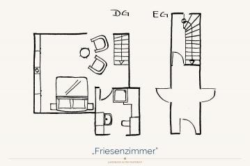 Gegenüber des Haupthauses, nur durch ein schmales Sträßchen getrennt, finden Sie unseren liebevoll restaurierten Friesenhof. Dieser beherbergt zwei Suiten und ein Doppelzimmer. Das Friesenzimmer, hell mit einer exklusiven, hochwertigen Einrichtung und ausgebautem Giebel, hat seinen ganz persönlichen Zauber. Ein eigener Treppenzugang in den ersten Stock vermittelt Großzügigkeit und unterstreicht die Einzigartigkeit dieses Doppelzimmers.