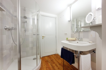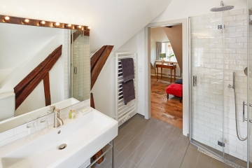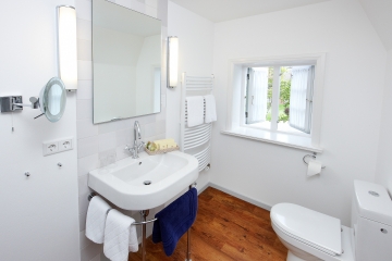 Gegenüber des Haupthauses, nur durch ein schmales Sträßchen getrennt, finden Sie unseren liebevoll restaurierten Friesenhof. Dieser beherbergt zwei Suiten und ein Doppelzimmer. Das Friesenzimmer, hell mit einer exklusiven, hochwertigen Einrichtung und ausgebautem Giebel, hat seinen ganz persönlichen Zauber. Ein eigener Treppenzugang in den ersten Stock vermittelt Großzügigkeit und unterstreicht die Einzigartigkeit dieses Doppelzimmers.